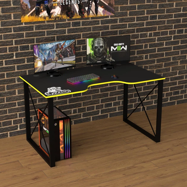 Геймерський стіл Rasin LOFT-13 Чорний+Жовтий 120х80 Тіса меблі