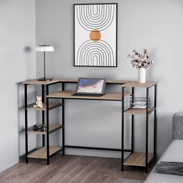 Стіл комп'ютерний в стилі лофт з металу та ДСП 150х90х60 см Дуб Сонома (N-09D)