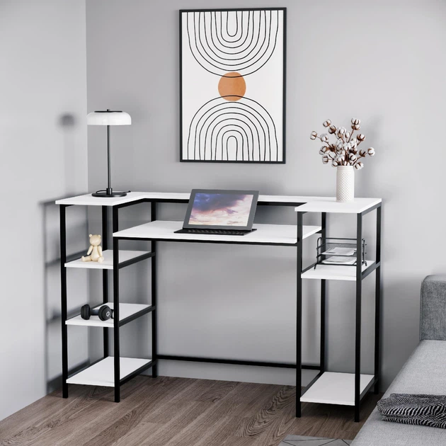 Стіл комп'ютерний в стилі лофт з металу та ДСП 150х90х60 см Білий (N-09B)