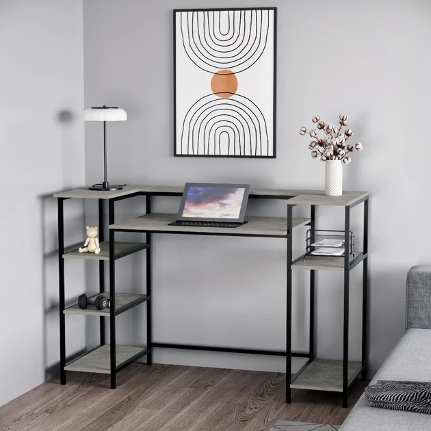 Стіл комп'ютерний в стилі лофт з металу та ДСП 150х90х60 см Бетон (N-09BT)