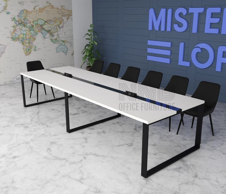 Стіл для переговорів Mister Loft Аскольд Glass Line 400*90 на 12-14 осіб Скандинавське Біле Дерево - Чорний (55860186)