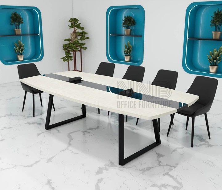 Стіл для переговорів Mister Loft Асканія Glass Line 270*110 на 8-10 осіб Скандинавське Біле Дерево - Чорний (57771442)
