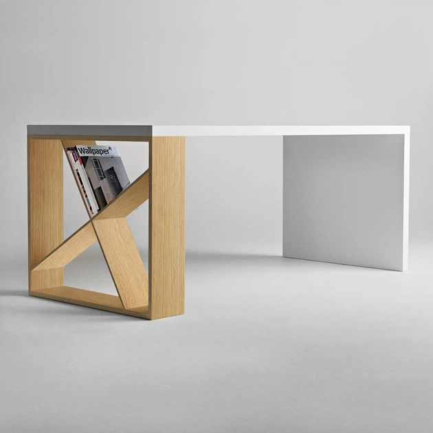 Стіл для комп'ютера письмовий MeBelle CHILL-2 120 х 60 х 75 см, ЛДСП білий + дуб, скандинавський, модерн