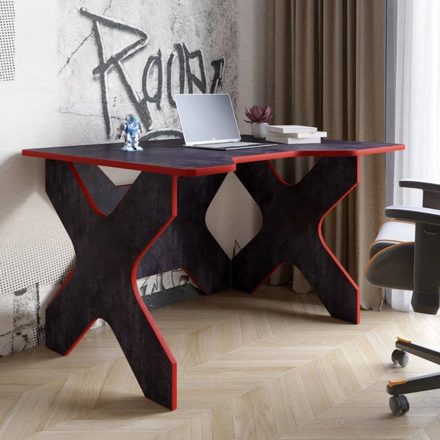 Комп'ютерний стіл LION Донат 120х90х74,5 см Бетон темний із червоною кромкою (LION-041700)