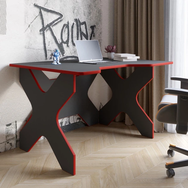 Комп'ютерний стіл LION Донат 120х90х74,5 см Антрацит із червоною кромкою (LION-041698)