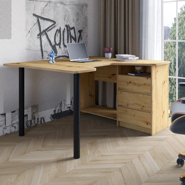 Геймерський комп'ютерний стіл LION Буст кутовий з шухлядами Дуб Артизан (LION-041454)