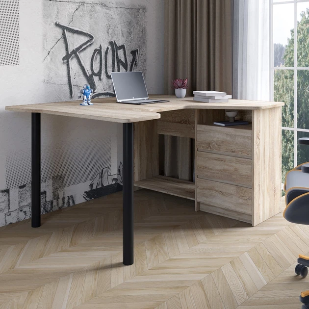Геймерський комп'ютерний стіл LION Буст кутовий з шухлядами Дуб сонома (LION-041456)