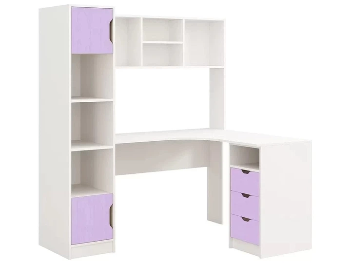 Стіл письмовий кутовий Teenager Viorina-Deko Білий/Лаванда (ламінована ДСП)