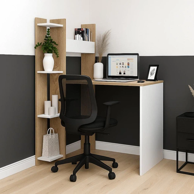 Кутовий маленький сучасний учнівський письмовий комп'ютерний стіл з відкритими полицями для підлітка, дитини школяра 80х126х