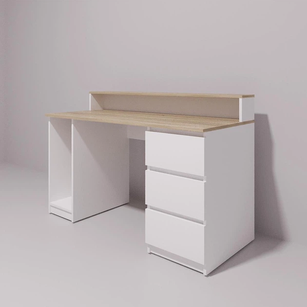 Стіл комп'ютерний ігровий Геймер з підсвіткою Білий / Дуб Сонома 1400x750/900x600 мм (арт. SKRZ1000-107)