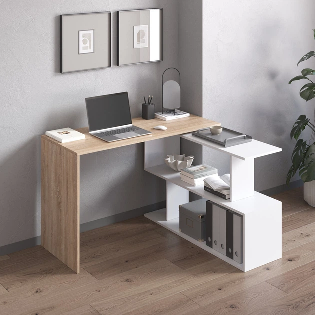 Поворотний комп'ютерний стіл трансформер VAYS Дуб сонома + Білий 120х118х76,6 см