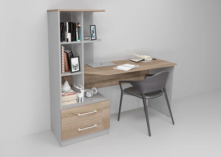 Комп'ютерний стіл Dexter Сірий Уніколор / Дуб Сонома Трюфель лівий Intarsio