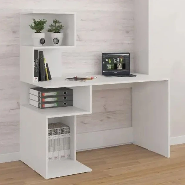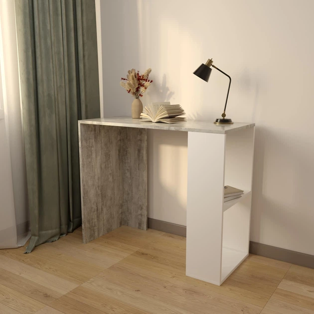 Стіл комп'ютерний 90х40 см з полицями маленький робочий стіл для школяра або в офіс Бетон/Білий
