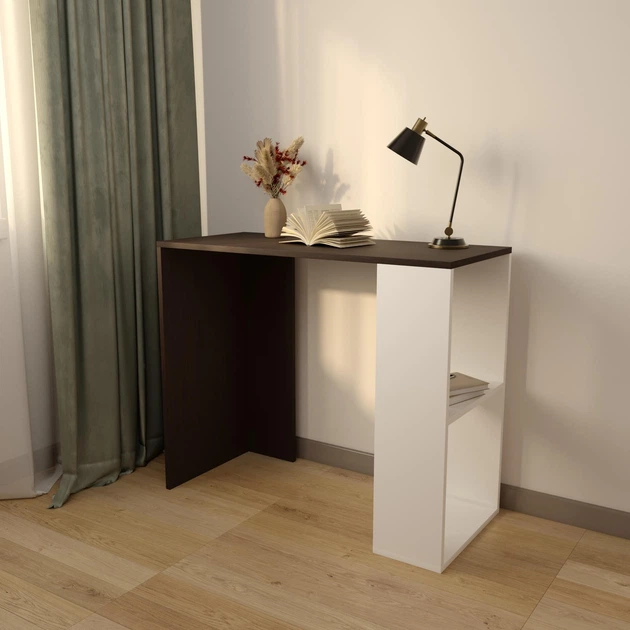 Стіл комп'ютерний 90х40 см з полицями маленький робочий стіл для школяра або в офіс Венге/Білий