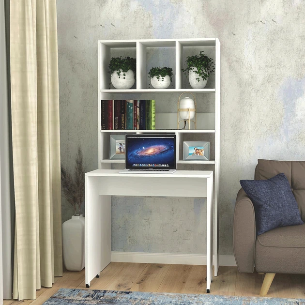 Високий недорогий розсувний стелаж в комп'ютерний письмовий білий стіл трансформер у дитячу робочий для школяра з ДСП 84х33х