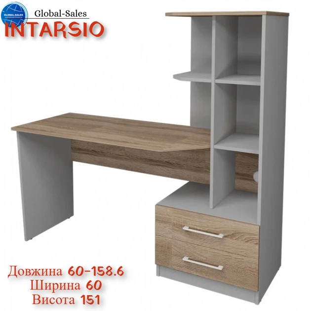 DEXTER L стіл листовий 1586*1515 сірий уніколор/дуб сонома трюфель