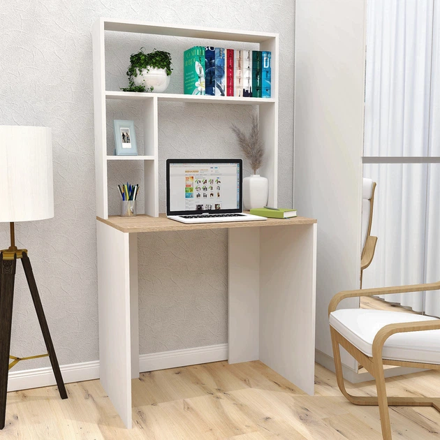 Маленький сучасний стильний вузький міні письмовий комп'ютерний стіл для ноутбука з надбудовою та відкритими полицями 80х50х