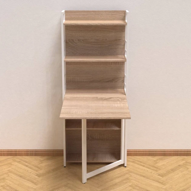 Стіл книжка із етажеркою Практик 2 Ferrum-decor 1555x640x990 Білий метал ДСП Дуб Сонома 16мм (FRD-104635)