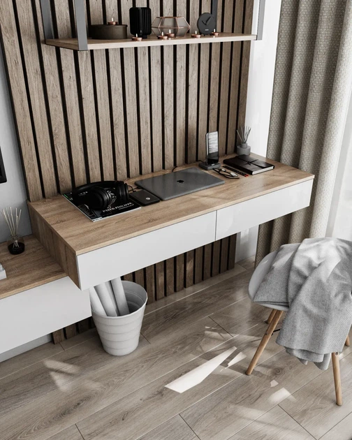 Стіл навісний Т-222 з двома шухлядами Дуб сонома + Білий Ш 1200 Г 500 В 160 мм, Nikoshop
