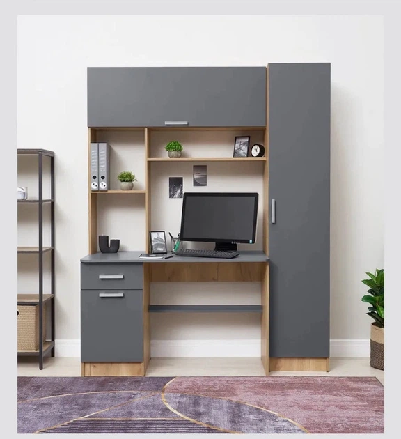 Мультифункціональний навчальний стіл з поліцями та шафою СЛТ-8, колір Дуб артизан + Антрацит