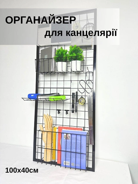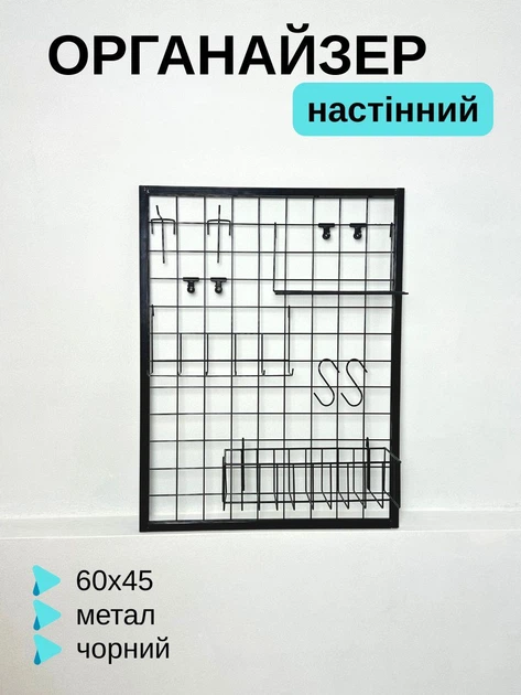 Настінний органайзер-сітка 6045 см, метал, чорний, у рамці - для офісу та дому (88352м)