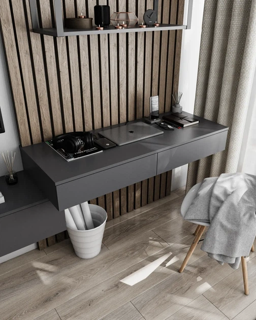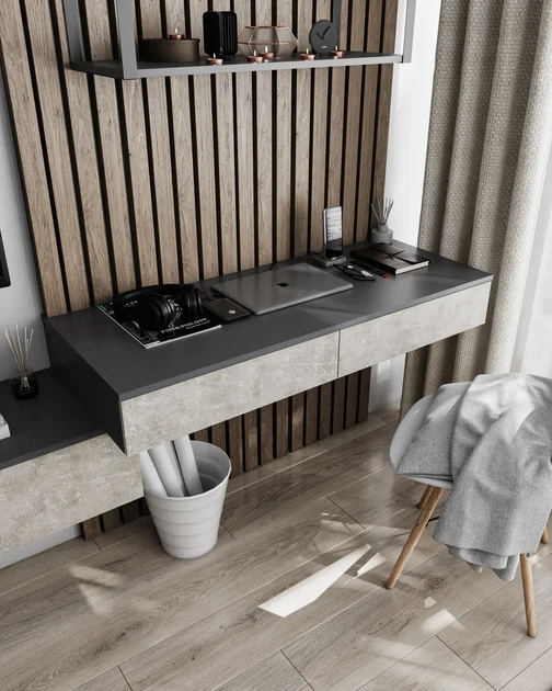 Стіл навісний Т-222 з двома шухлядами Антрацит + Бетон Ш 1200 Г 500 В 160 мм, Nikoshop