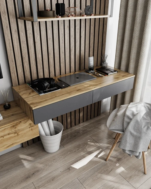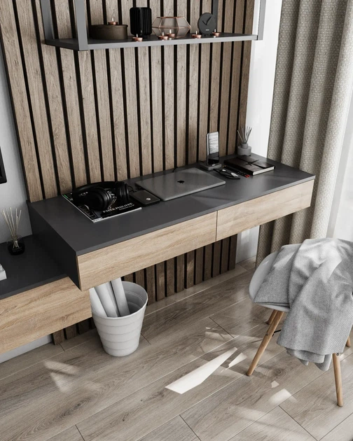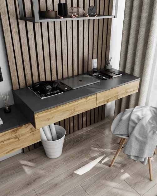 Стіл навісний Т-222 з двома шухлядами Антрацит + Дуб сонома Ш 1200 Г 500 В 160 мм, Nikoshop