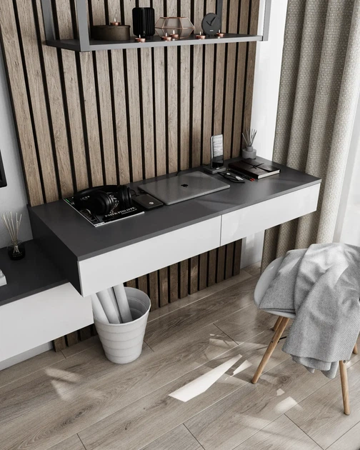Стіл навісний Т-222 з двома шухлядами Антрацит + Білий Ш 1200 Г 500 В 160 мм, Nikoshop