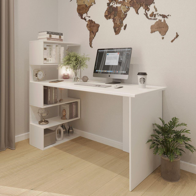 Комп'ютерний стіл ЛДСП зі стелажем з лівої сторони 141.6х122.6х60 см Білий