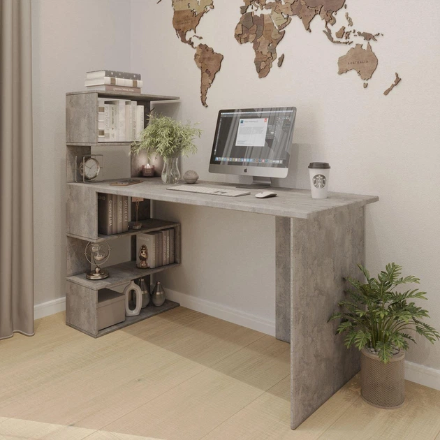 Комп'ютерний стіл ЛДСП зі стелажем з лівої сторони 141.6х122.6х60 см Бетон