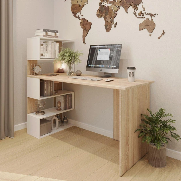 Комп'ютерний стіл ЛДСП зі стелажем з лівої сторони 141.6х122.6х60 см Сонома/Білий