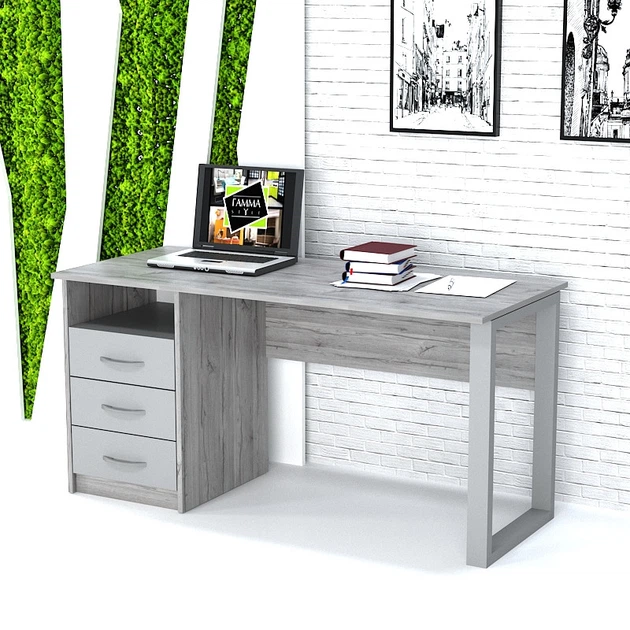 Офісний стіл лофт ХП-3 (600x1400x765) Хортиця/Сірий Гамма стиль