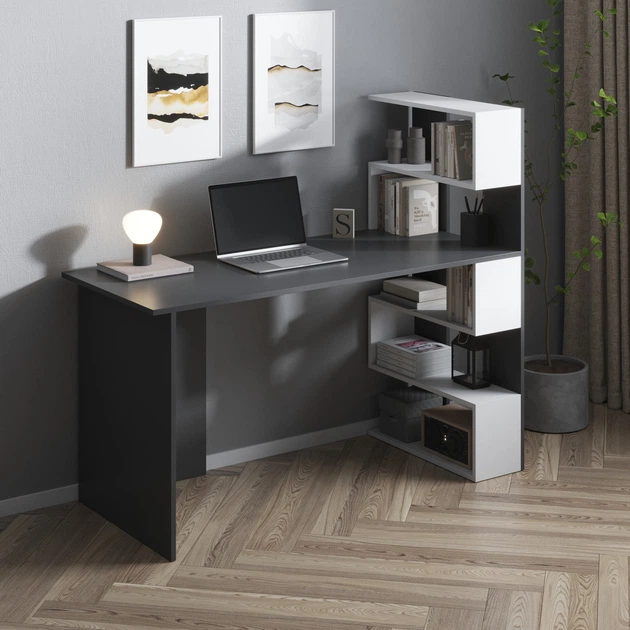 Письмовий стіл з полицями VAYS Антрацит + Білий 141,6х60х122,6 см
