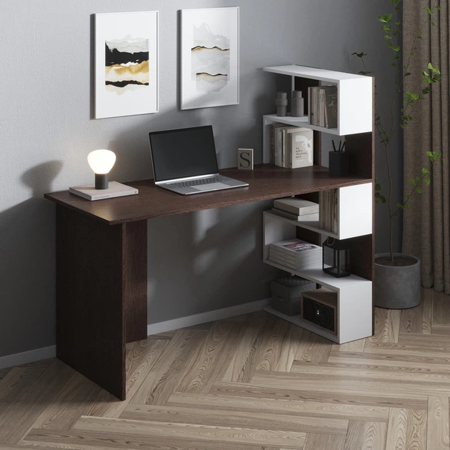 Письмовий стіл з полицями VAYS Венге темний + Білий 141,6х60х122,6 см