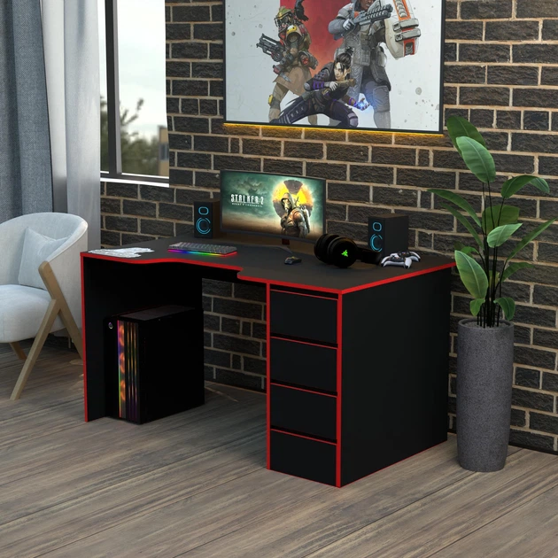 Геймерський стіл Rasin RS-32 Чорний+Червоний 140х80 Тіса меблі