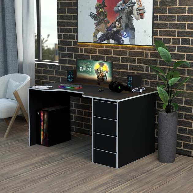 Геймерський стіл Rasin RS-32 Чорний+Білий 140х80 Тіса меблі