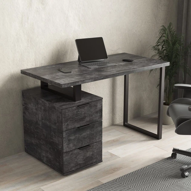 Комп'ютерний стіл СТК-08 Лофт з тумбою і ящиками Ш 1200/В 755/Г 600 мм у кольорі Бетон Темний, Nikoshop