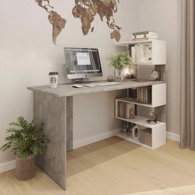 Письмовий стіл кутовий ламінована ДСП з полицями 141.6х122.6х60 см Бетон/Білий