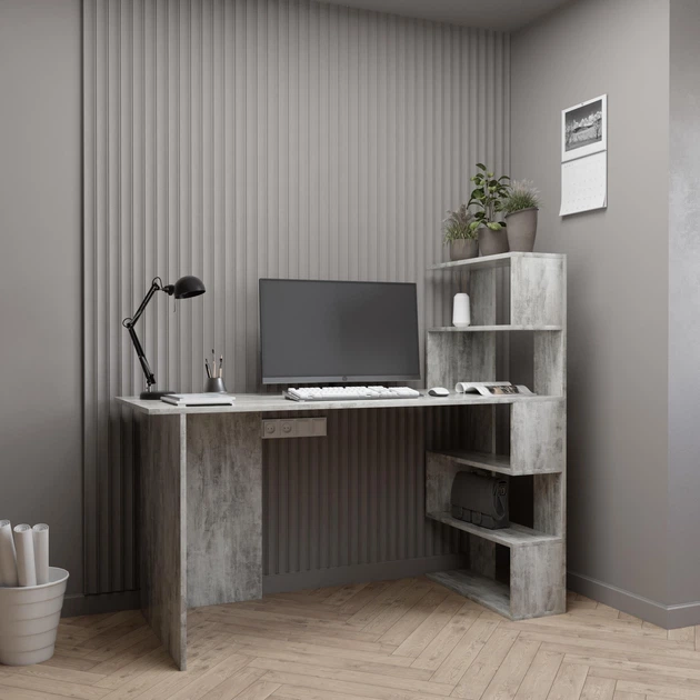 Письмовий стіл кутовий ламінована ДСП з полицями 141.6х122.6х60 см Бетон