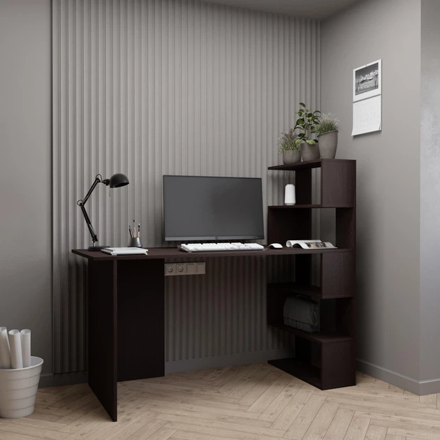 Письмовий стіл кутовий ламінована ДСП з полицями 141.6х122.6х60 см Венге