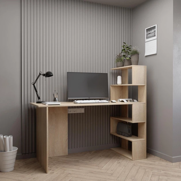 Письмовий стіл кутовий ламінована ДСП з полицями 141.6х122.6х60 см Сонома
