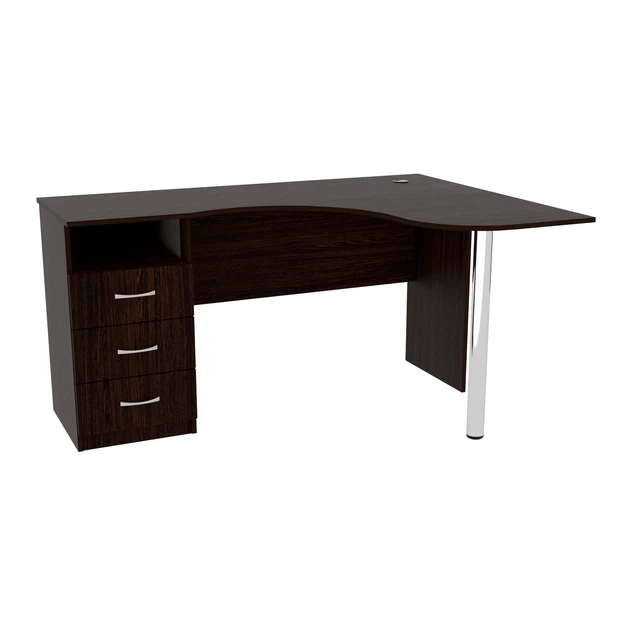 Письмовий стіл кутовий з шухлядами і полицею Мередіан Вінг-7 колір венге 150х110 см