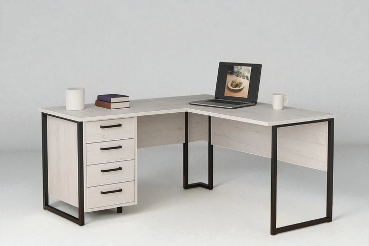 Стіл кутовий офісний Tobi Sho LOFT Iceberg СУЛА/2-1 з 4 шухлядами стільниця 18 мм, 1600х1400х750 Дуб крафт білий