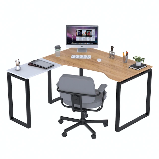 Стіл кутовий офісний Tobi Sho LOFT Gold СУЛГ/1-1 стільниця 18 мм, 1600х1400х750 Дуб аппалачі