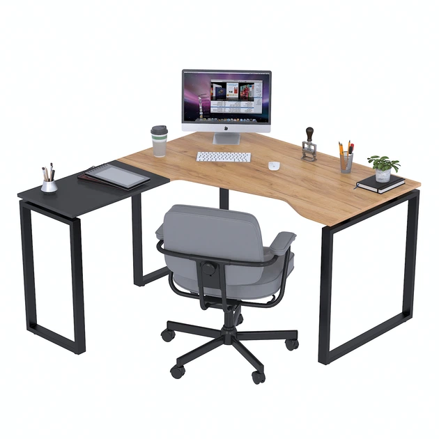 Стіл кутовий офісний Tobi Sho LOFT Gold СУЛГ/1-1 стільниця 18 мм, 1400х1200х750 Дуб аппалачі