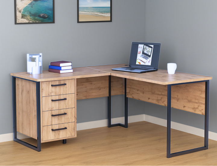 Стіл кутовий офісний Tobi Sho LOFT Gold СУЛГ/2-1 з 4 шухлядами стільниця 18 мм, 1600х1400х750 Дуб аппалачі