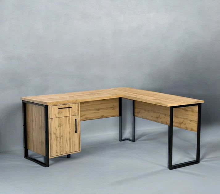 Стіл кутовий офісний Tobi Sho LOFT Gold СУЛГ/4-1 з тумбою стільниця 18 мм, 1400х1200х750 Дуб аппалачі