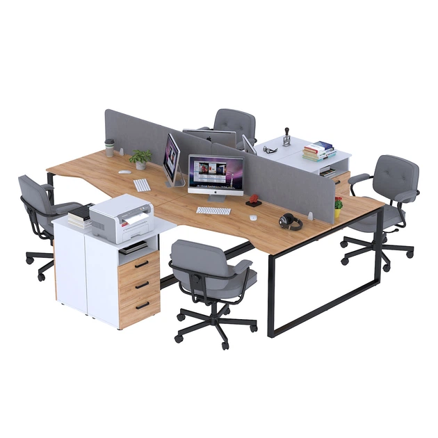 Стіл кутовий на 4 місця з тумбою ND4U-3S-270 Дуб Крафт золотий - Білий