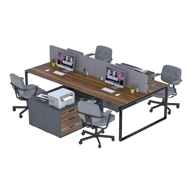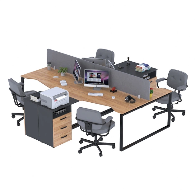 Стіл кутовий на 4 місця з тумбою ND4T-3S-270 Горіх Модена - Антрацит