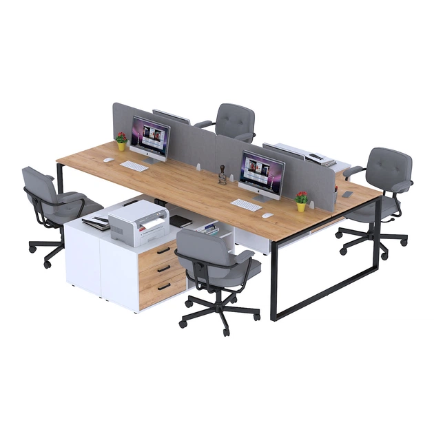 Стіл кутовий на 4 місця з тумбою ND4U-3S-270 Дуб Крафт золотий - Антрацит